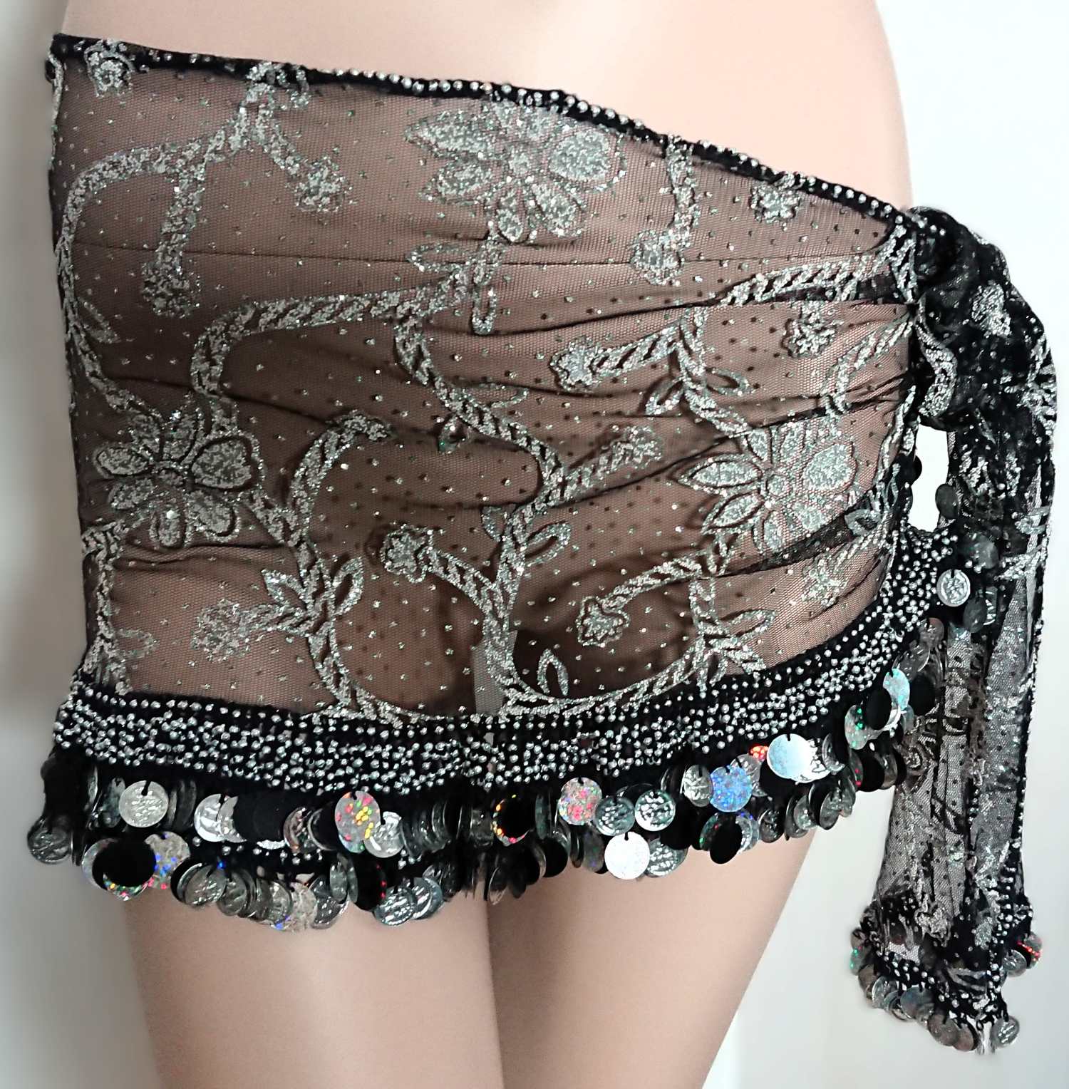 - hopeiset kolikot ja helmet sekä hopeiset ja mustat paljetit